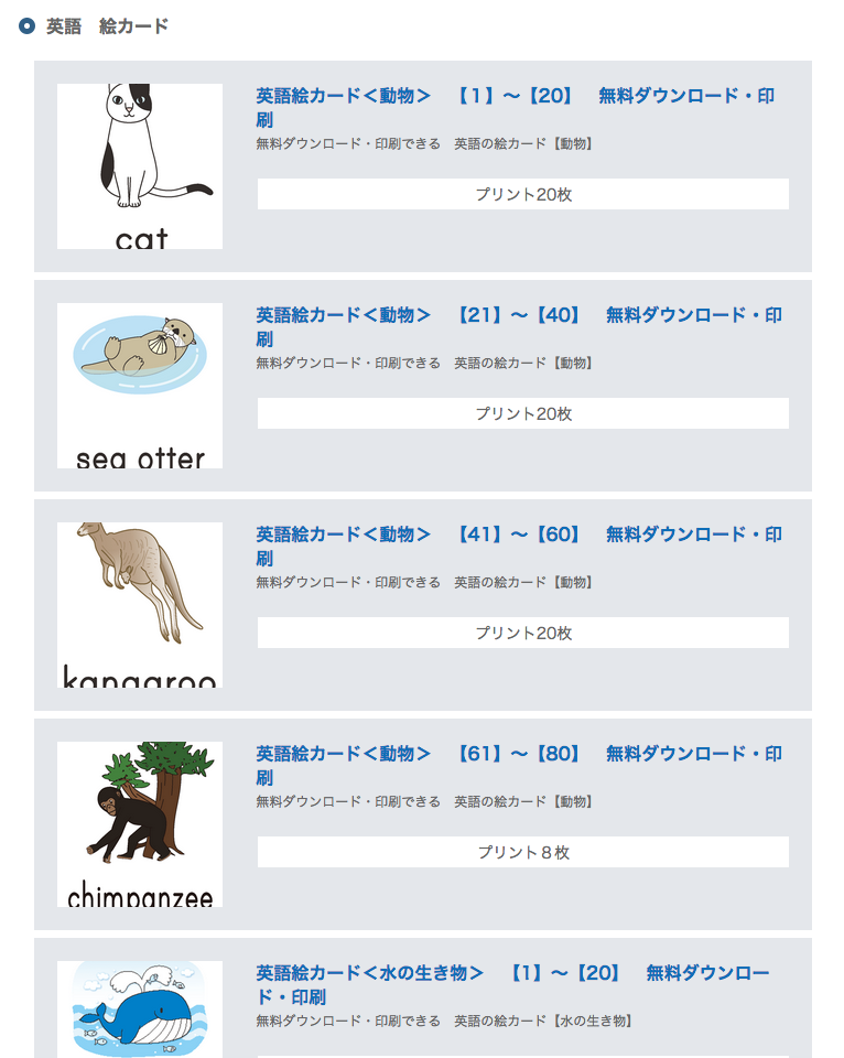 ちびむすドリル 英語絵カード